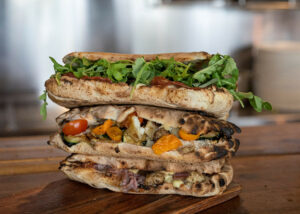 7,20 €Pain panuozzo, fromage fines herbes, camembert, chèvre, mozzarella